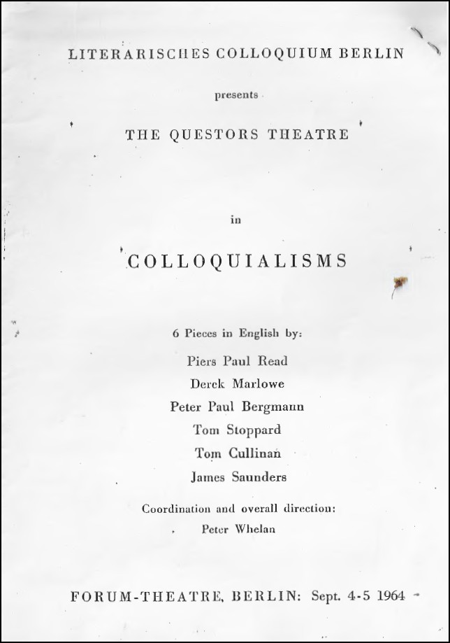 In 1963 James Saunders was invited by a Berlin arts body called the Literary