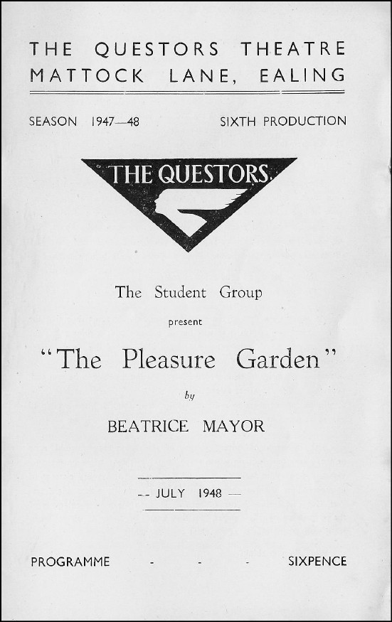 Our graduation play was THE PLEASURE GARDEN by Beatrice Mayor which offered a large number of character parts — I had two.