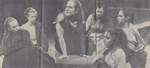Michael Langridge (who had graduated from Group 16) and Reta Saxton-Howes made quite a hit as a double act in THE WEDDING playing an aged waiter and waitress. Reta Saxton-Howes also drew praise for her performance in the THE BALD PRIMA DONNA. The pair were to repeat their partnership the following year in a director's showcase production of Ionesco's play THE CHAIRS.