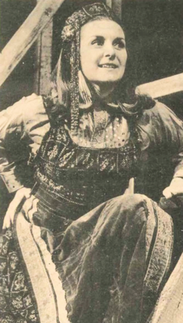 "Two things, though, were the real magic: Gillian Kerswell singing BARBARA ALLEN, only comparable in yearning beauty amongst American folk-songs with BLACK IS THE COLOUR OF MY TRUE LOVE'S HAIR; and the curtain... the witch-boy, his brief humanity lost, callously pushing Barbara's dead body with his foot, sending it toppling down a slope, casting his scarlet neckerchief after her — and vanishing as the lights blacked out..."