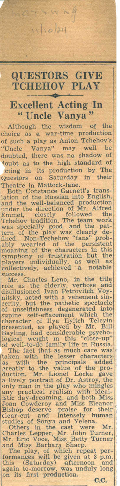 Bill Bayling, Eleanor Bishop, Joan Cowderoy, Charles Leno, Charles Lepper, Lionel Locke, Barbara Sharp, Betty Turner, John Turner, Eric Voce Production Team: