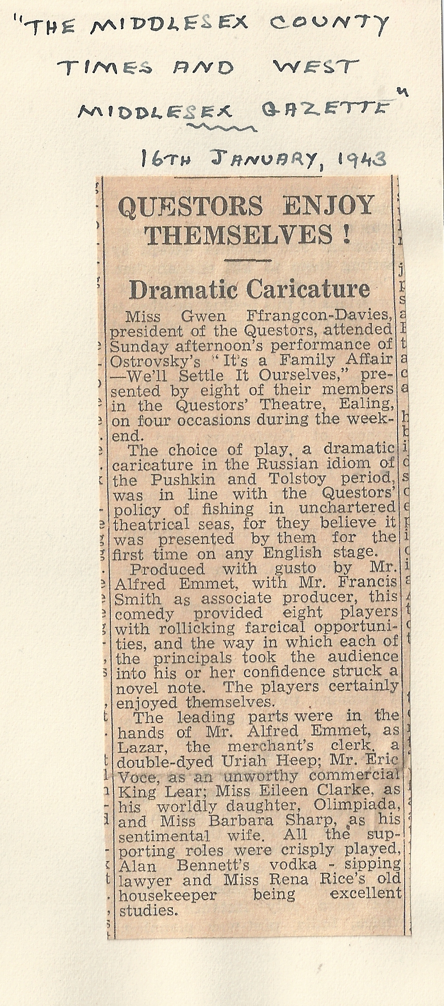 Joan Angel, Alan Bennett, Eileen Clarke, Madge Dolman, Alfred Emmet, Rena Rice, Barbara Sharp, Eric Voce