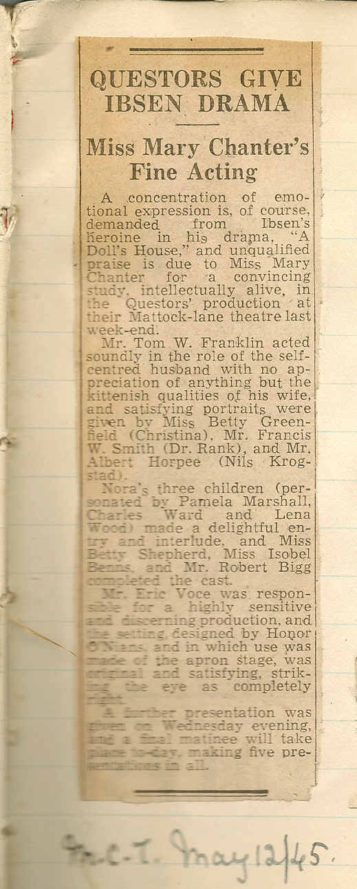 Isobel Benns, Robert Bigg, Mary Chanter, Tom W Franklin, Betty Greenfield, Albert Hooper, Pamela Marshall, Betty Shepherd, Charles Smith, Francis W Smith, Tessa Wood Production Team: