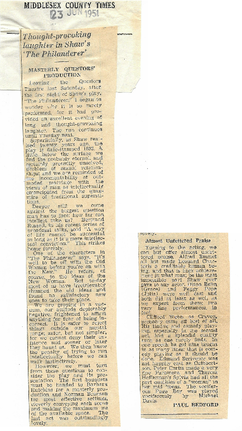 Cast: Cyril Box, Patrick Brain, Stanley Burgess, John Clemow, June Davies, Madge Dolman, Ruby Feast, Ned Gethings, Theresa Heffernan, Henry Heilpern, Albert Hooper, Joyce Hornett, John Howard, Harry Ives, Pamela Manson, Wilfred Morton, Rose Anne Neave, Betty Ogden, Peggy Pope, David Pryce, Wilfrid Sharp, Angela Singleton, Francis W Smith, Leslie Tidd Production Team: Dorothy Barnett, Coya Bisgood, Iris Coe, June Davies, Alfred Emmet, Joyce Hornett, Gerry Isenthal, Madge Ives, Ernest Ives, Eric Kirby, Nancy Lambourn, Roy Matthews, Mayrick Osborne, Joan Sawkins, Alexander Turner, Morffyd Walters |
