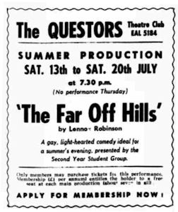 This was the first of three plays by Ned Gethings (a very popular and colourful acting member of Questors until his death in 1985) to be premiered by the Student Group.
