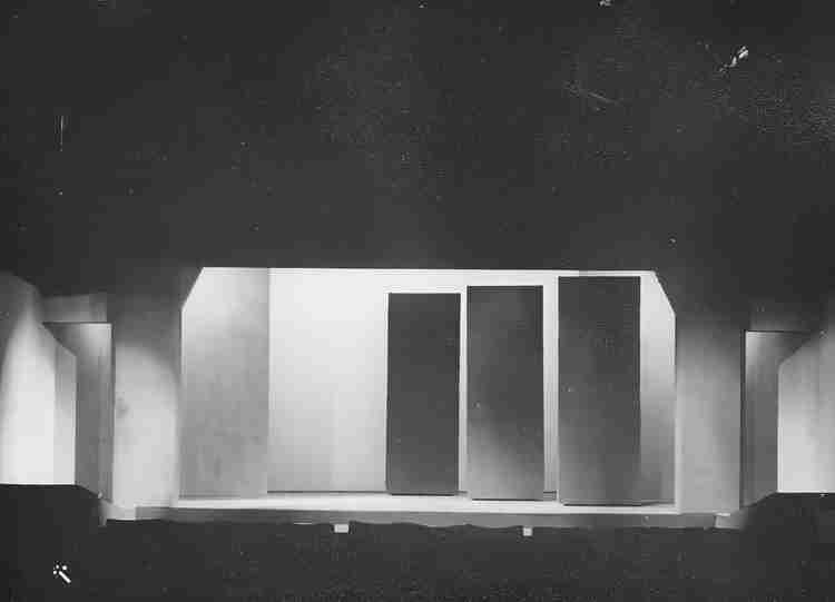 The set consisted of three large movable structures that carried the actors into a multitude of varying relationships, heightened by the use of directional and coloured lighting.