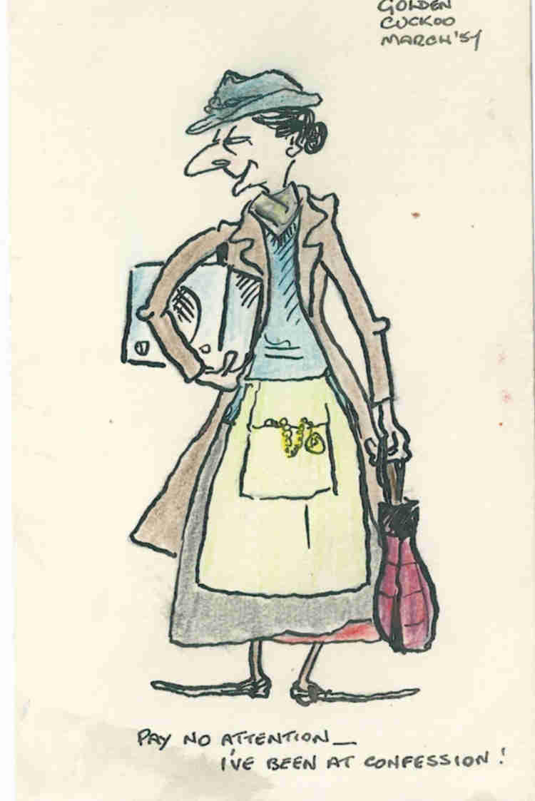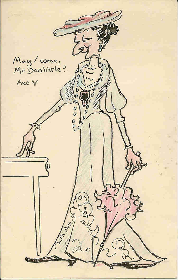 Ffrangcon Price (still yet-to-be Whelan) shone as Eliza Doolittle and was surrounded by (amongst others) Bill Rudderham. Alan Drake, Frank Smith. David Lorraine, Vincent McQueen, Betty Ogden and Paul Imbusch (who inevitably gave us another sketch of Betty Ogden - what was going on between these two?) - with Joannie McQueen stepping in as the housemaid for the trip to Torquay.
