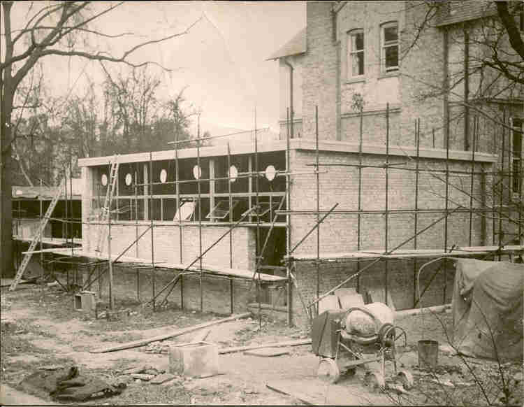 The Shaw Room block (comprising a meeting hall, coffee bar, cloakroom and lavatories) was nearing completion, as was an unforeseen "extra" - a transformer house and electricity sub-station, necessitated by a change in policy of the Electricity Board - and thoughts were beginning to focus on the construction of the Stanislavsky Room.