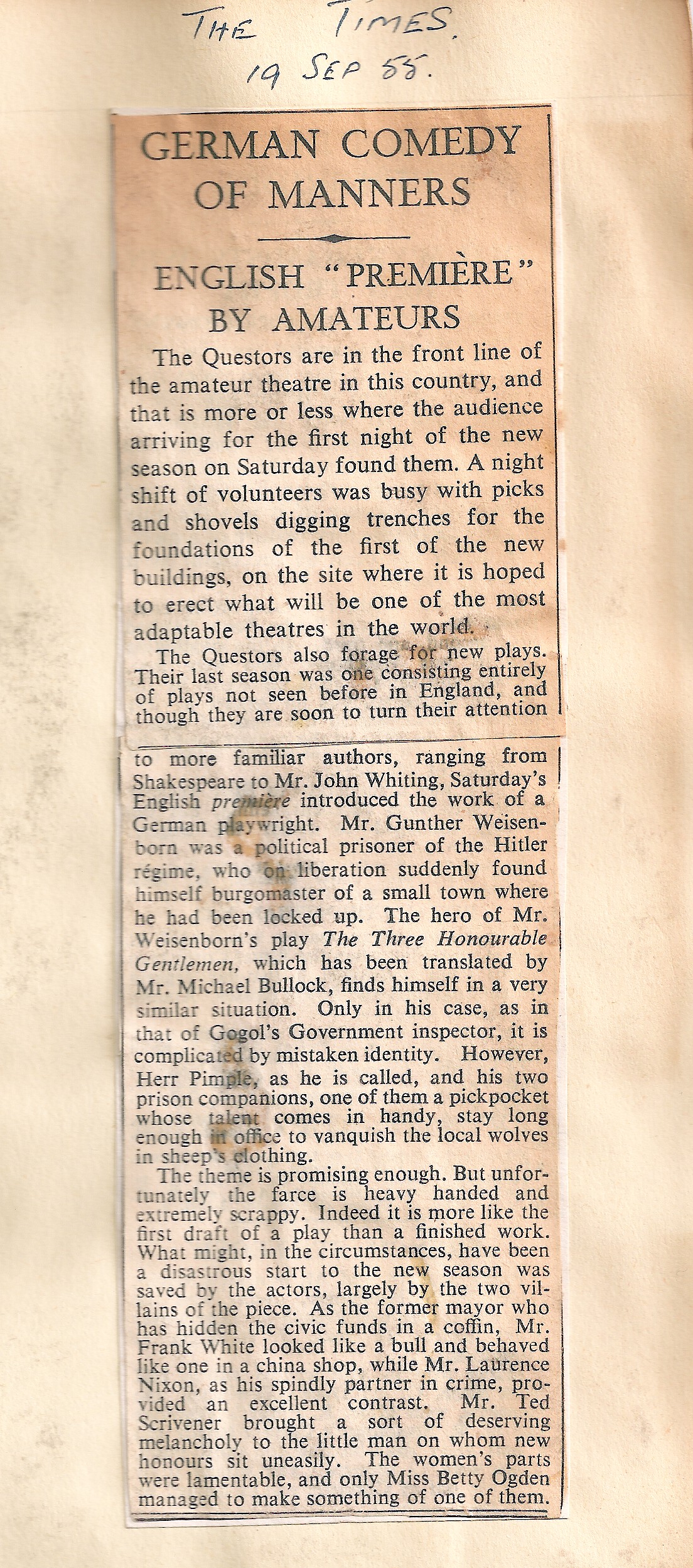 Ralph Alder, Sylvia Estop, Bryan Evans, Ruby Feast, Sylvia Jarvis, Bernard Mclaughlin, Laurence Nixon, Betty Ogden, Kate Onley, Edward Pitt, Gerald Rawling, Ted Scrivener, Frank White Production Team: